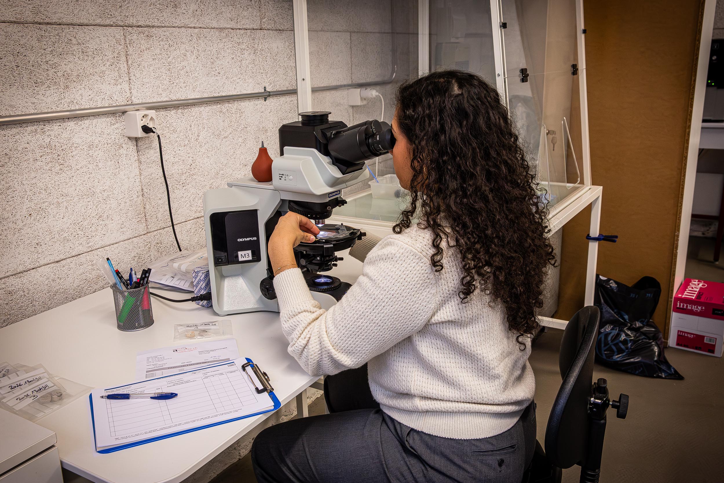 Easy Amiante est le seul bureau d’expertise du bassin genevois à disposer de son propre laboratoire d’analyses minéralogiques dédié aux polluants du bâtiment. Cette infrastructure interne nous permet de garantir une maîtrise complète des analyses, des délais optimisés et une traçabilité totale des résultats.
